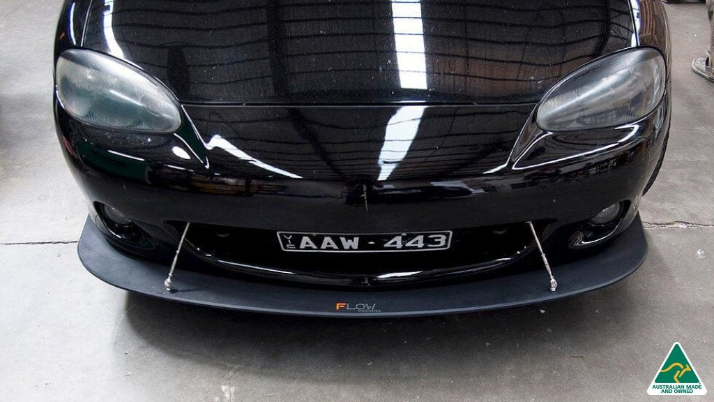 Complete the aero aesthetic of any MX5 (NB Miata) build with Flow Designs front splitter, which includes a pair of support rods! The installation process of the front splitter is simple as instructions are provided & durability is guaranteed as the splitter will not chip or crack under pressure.