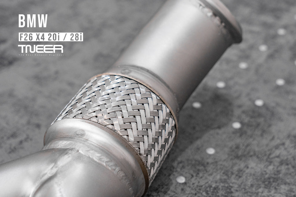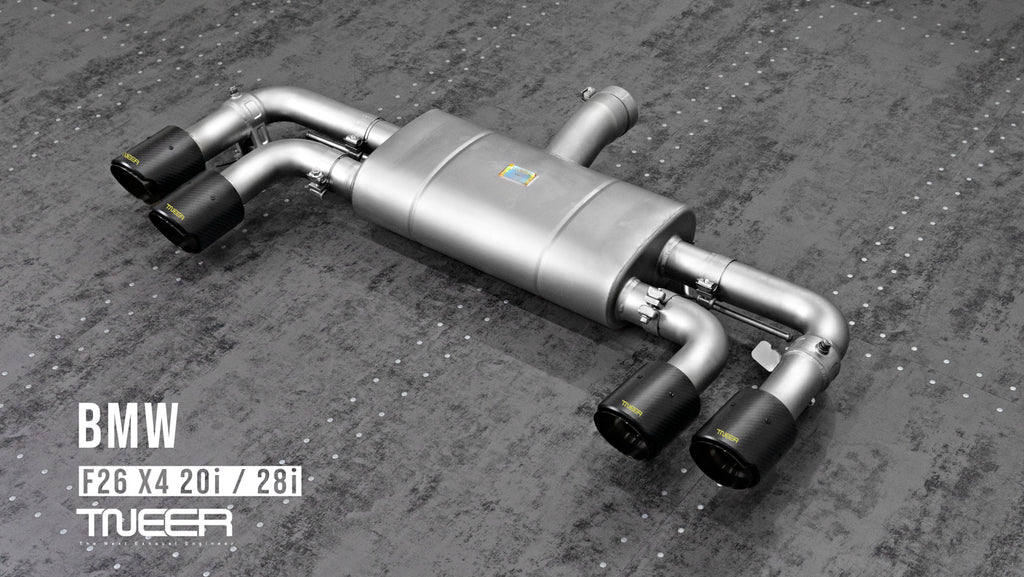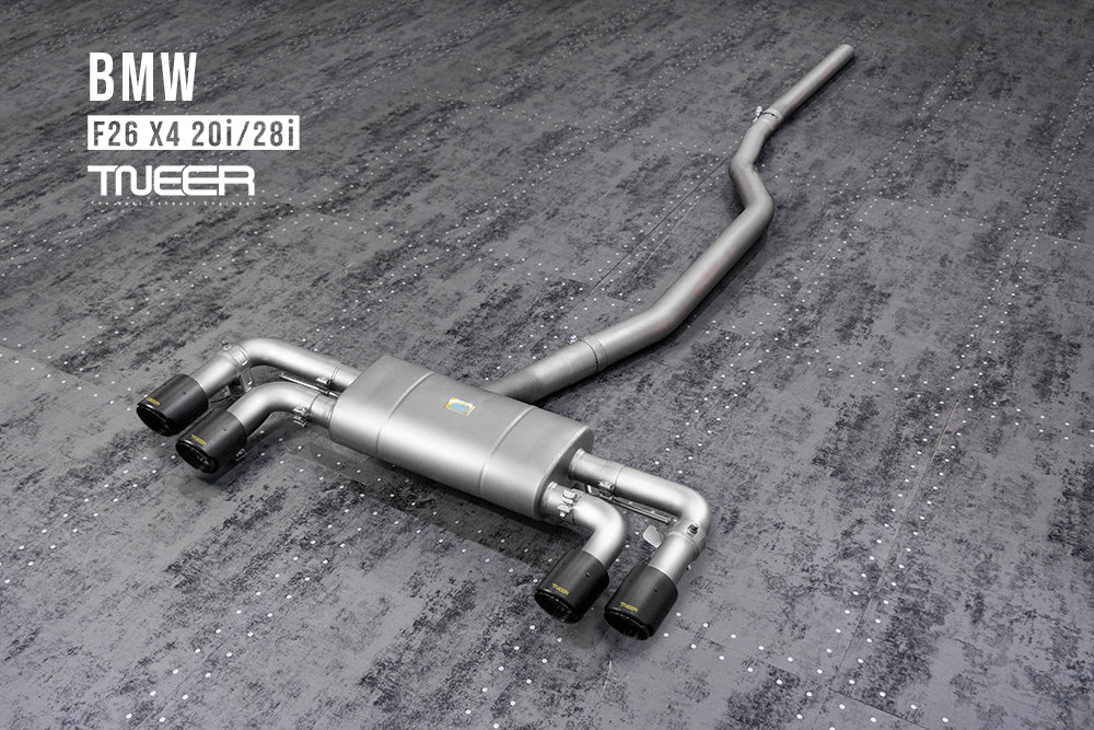 Stand out with this incredible TNEER Mid X-Pipe + Rear Mufflers (Valvetronic) + Quad Silver Tips for BMW X4 20i / 28i F26. (Years: 2014 - 2018)