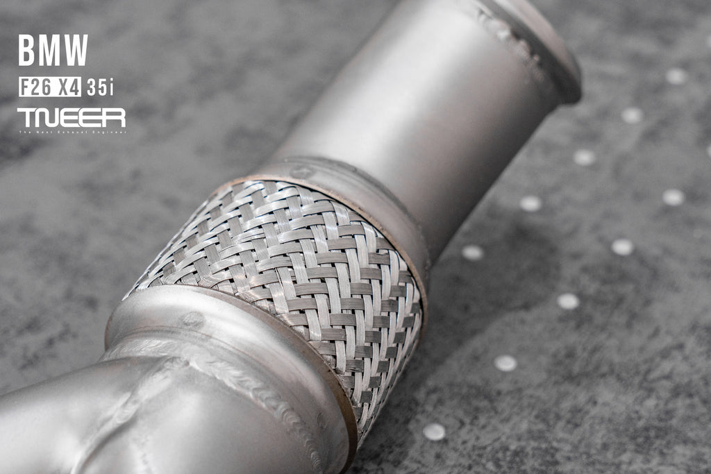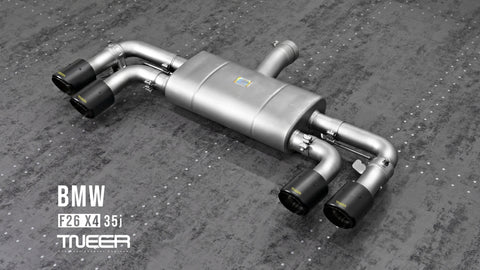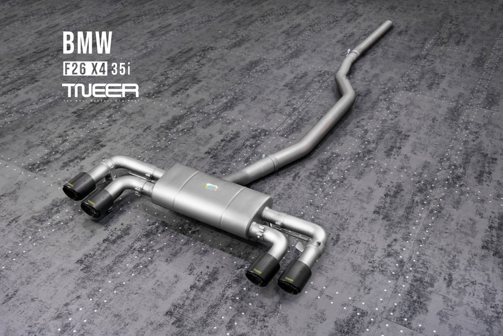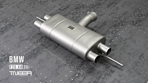 Stand out with this incredible TNEER Mid X-Pipe + Rear Mufflers (Valvetronic) + Quad Silver Tips for BMW X4 35i F26. (Years: 2014 - 2018)