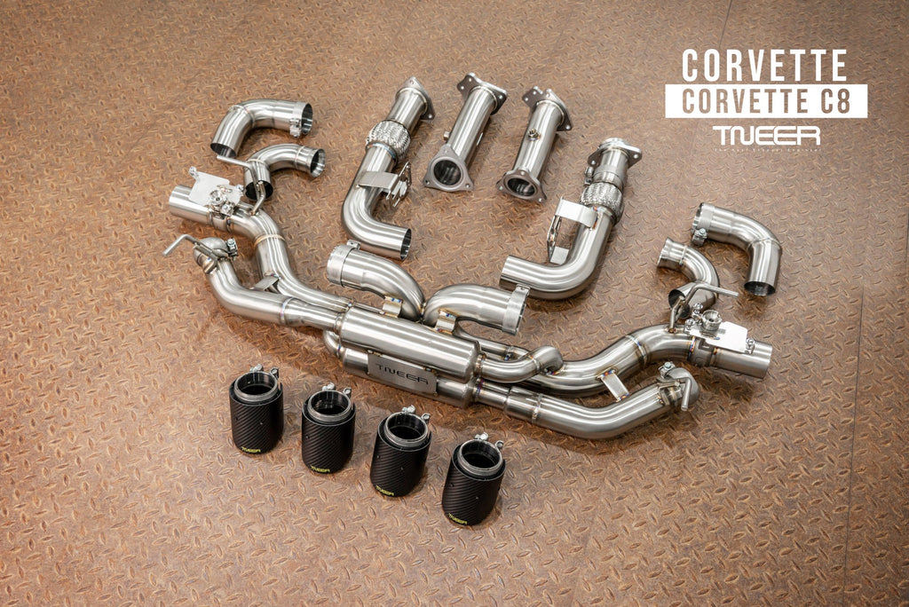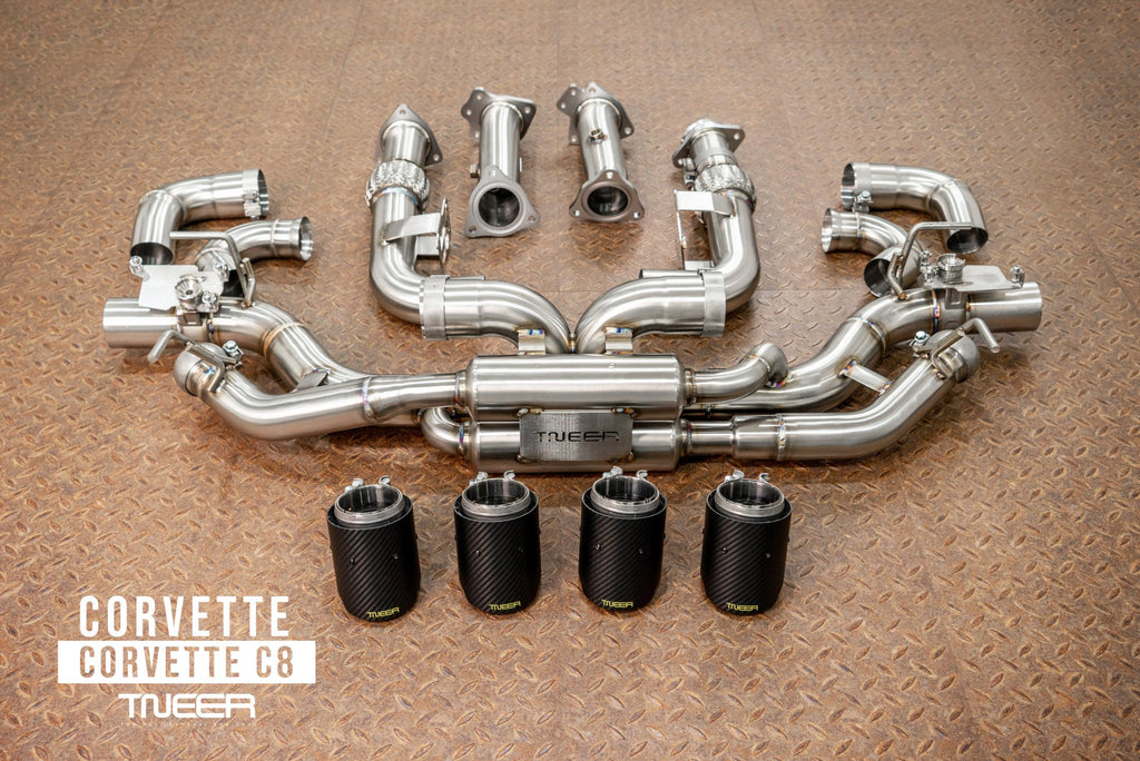 Stand out with this incredible TNEER Rear Mufflers (EV) + Quad Silver Tips for Chevrolet Corvette C8 Stingray. (Years: 2020 - Present)