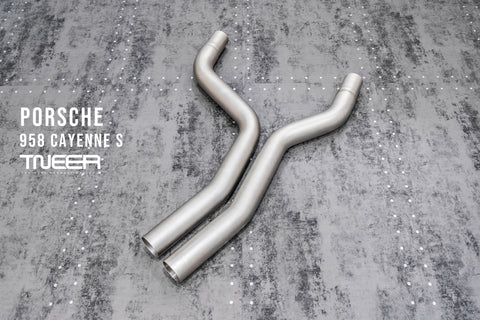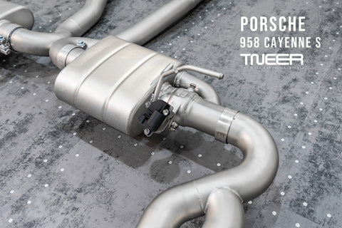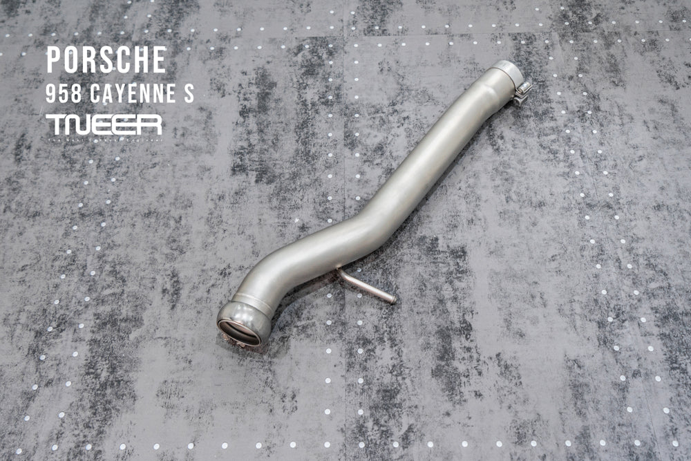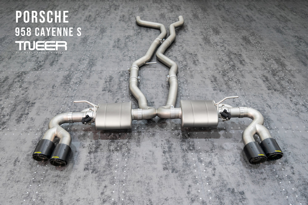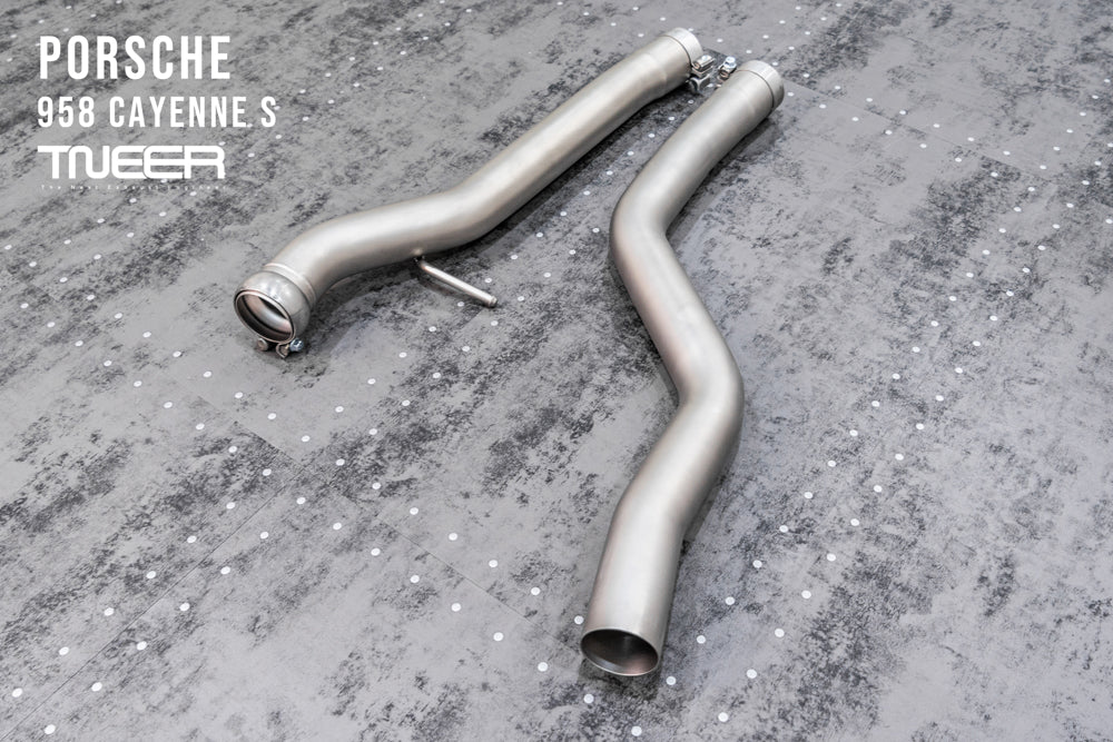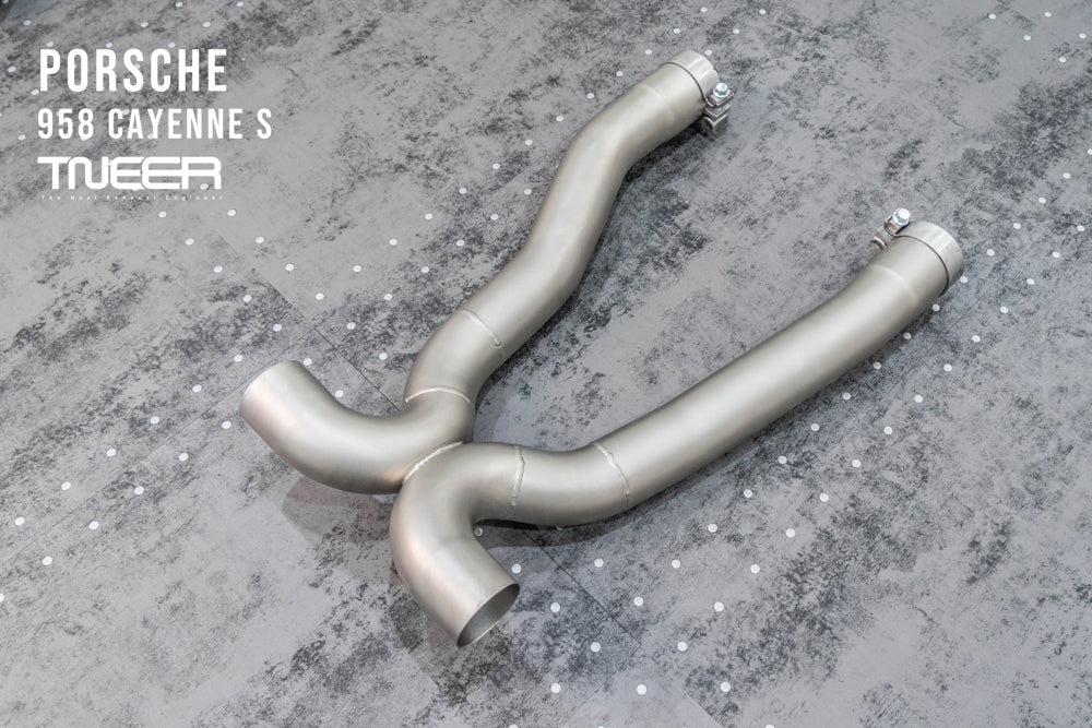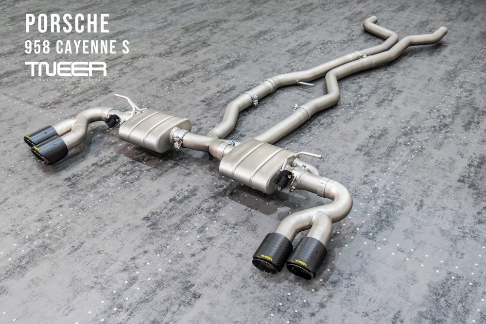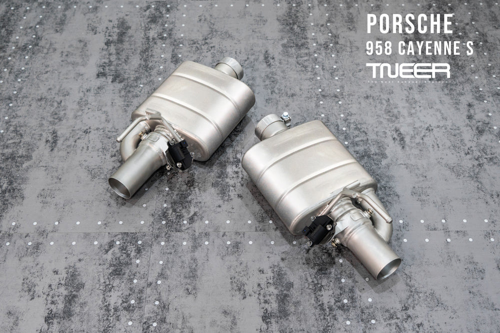 Stand out with this incredible TNEER Front Pipe + Mid X-Pipe + Rear Mufflers (Valvetronic) + Quad Silver Tips for Porsche 958.1 Cayenne S Hybrid 3.0T. (Years: 2011 - 2018)