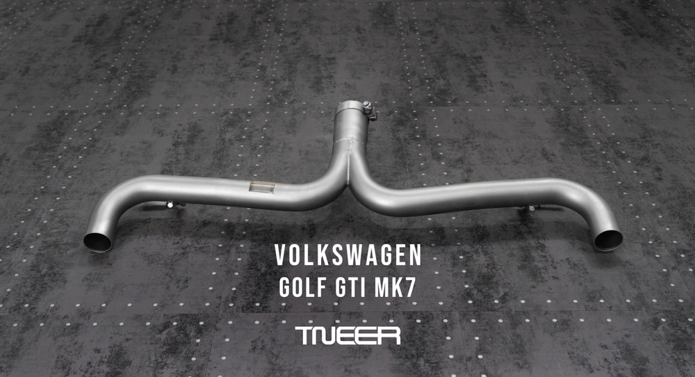 Stand out with this incredible TNEER Front Pipe + Mid Mufflers (Valvetronic) + Rear Pipe + Dual Silver Tips for Volkswagen Golf GTI MK7. (Years: 2012 - 2016)
