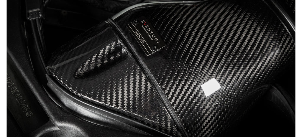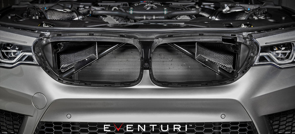 The F90 M5 Eventuri system uses our Patented Carbon Fibre Housings with our Gen 2 bespoke filters, which provide an aerodynamically efficient airflow path from the filter to the turbos. Not just another cone filter with a heat shield but a unique design which invokes the Venturi affect and maintains laminar flow conditions to reduce the drag on the turbo.