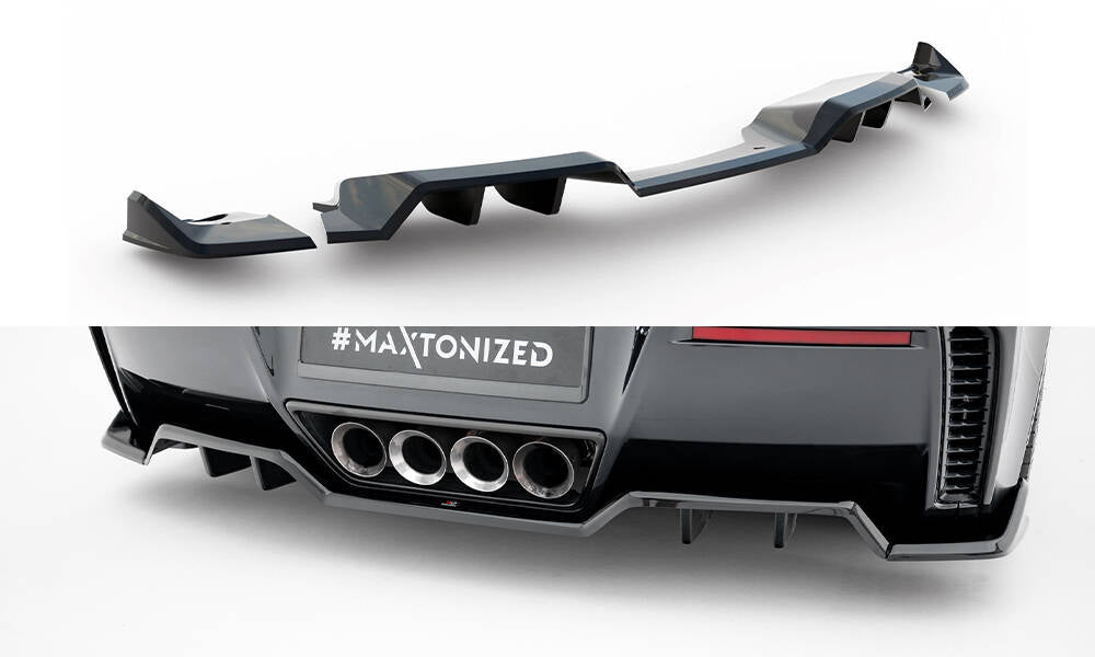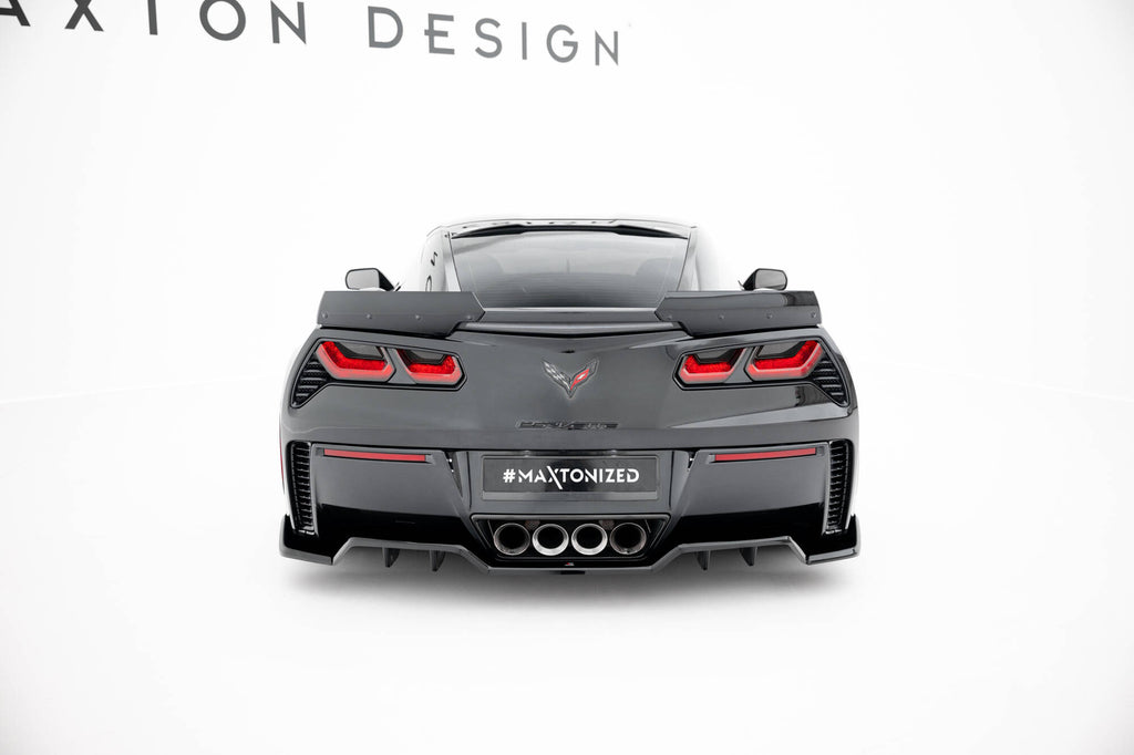 Stand out with this incredible Maxton Design Rear Splitter (with Vertical Bars) + Rear Side Splitters for your Chevrolet Corvette Z06 C7. (Years: 2013 - 2019)