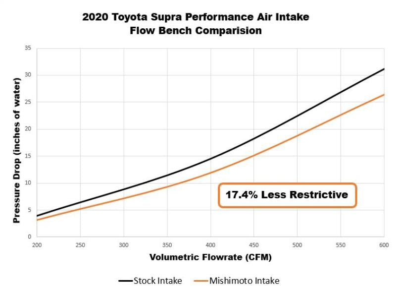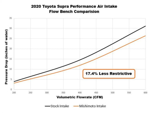 Help your A90 Supra breathe deeper with the Mishimoto 2020+ Toyota GR Supra 3.0T Performance Intake. The Supra has long since been the poster child for the aftermarket tuning community, with air intakes typically taking the top slot on the tuner's to-do list. While the BMW B58 that powers the Supra is a heavy hitter, the stock intake system ends up adding more restriction to your finely tuned sports car. From the flat panel filter to the tag team of resonators, this system mutes the turbocharged soundtrack and creates restrictions.