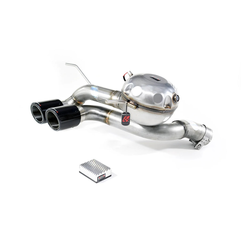 Our Sound Enhancer Exhaust System replaces the bulky rear silencer with a Sound Architect™ Sound Generator and 2 stunning QS branded carbon fibre tailpipes. Our electric sound generator then produces an artificial engine sound that exits the vehicle alongside the actual diesel exhaust gases.