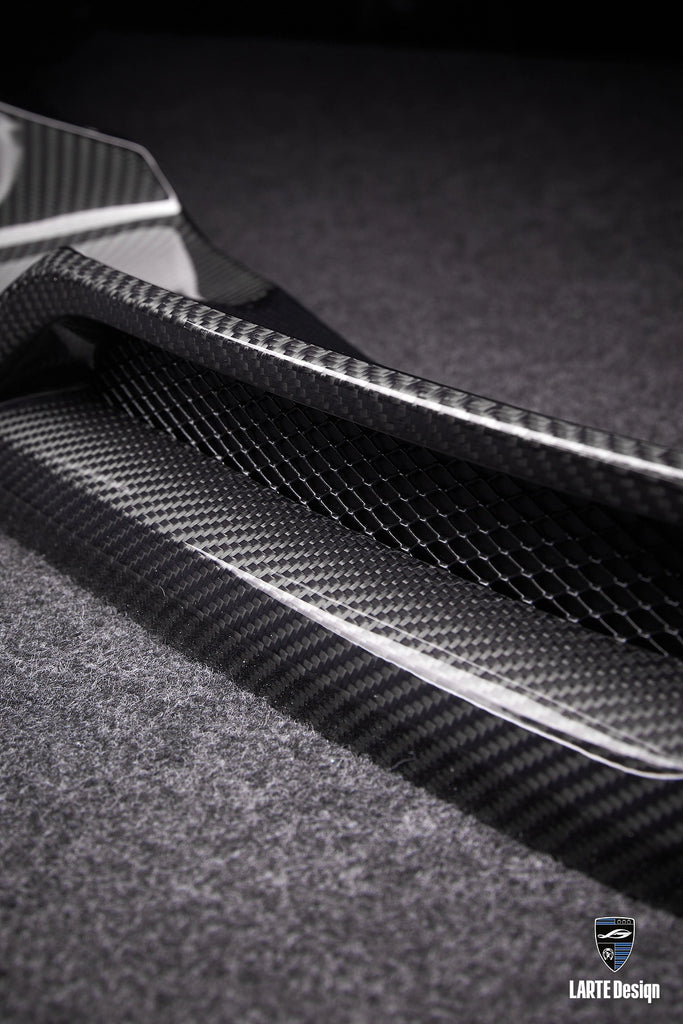 At the client request the body parts of this kit can be made out of premium carbon fiber or composite materials, with the varieties on painting in a main body color or with a black glossy finish.