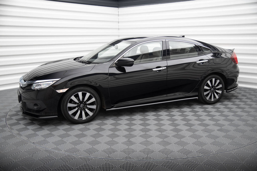 The side skirts diffusers for Honda Civic Mk10 are manufactured from the highest-quality ABS. The material is marked by its sturdiness, flexibility, and resistance to damage and harmful effects of atmospheric conditions. It is universally employed in the production of not only tuning components and elementary vehicle outfitting. The Maxton Design side skirts diffusers have bee given the TUV MATERIALGUTACHTEN certification. They are topped with a special protective layer to secure them from the damaging influence of UV radiation.
