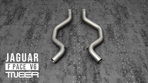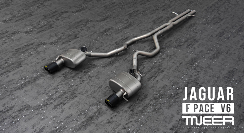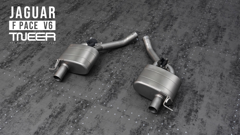 Stand out with this incredible TNEER Mid Pipe + Rear Mufflers (Valvetronic) + Dual Silver Tips for Jaguar F-Pace V6 3.0. (Years: 2017 - Present)
