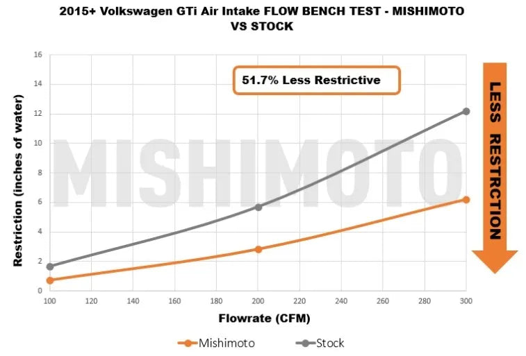 • Reduces air intake restriction by 51.7% compared to the stock intake system