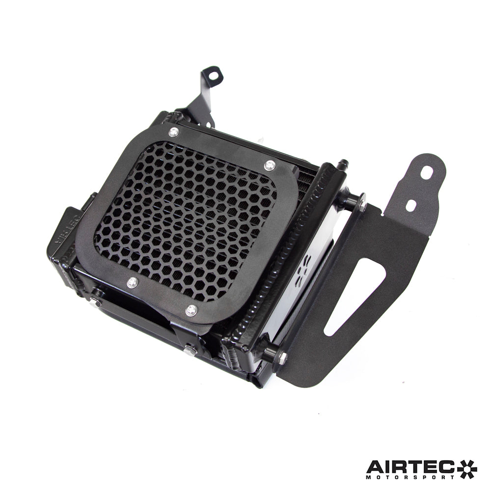 Developed in-house at AIRTEC HQ in the UK we designed a series of new products to address the cooling issues when pushed to the limit. This additional radiator fits neatly behind the fog light (requires removal) and utilises laser-cut aluminium ducting to force cold air through the radiator. To create a flow path and further improve cooling, air then exits via the inner arch liner (requires cutting). A pre-cut mesh shield is supplied for both the front and rear to protect the radiator from road debris damage.