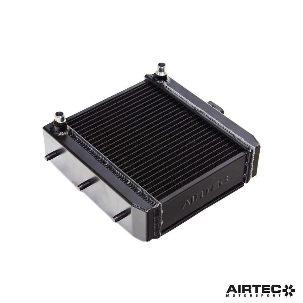 AIRTEC Motorsport’s solution to improving the original set up is utilise the available space behind the front bumper and develop a direct replacement radiator that’s both wider and thicker. This means capacity is increased by a 65% over standard, whilst frontal area is also increased by 13% to help cool the extra capacity.