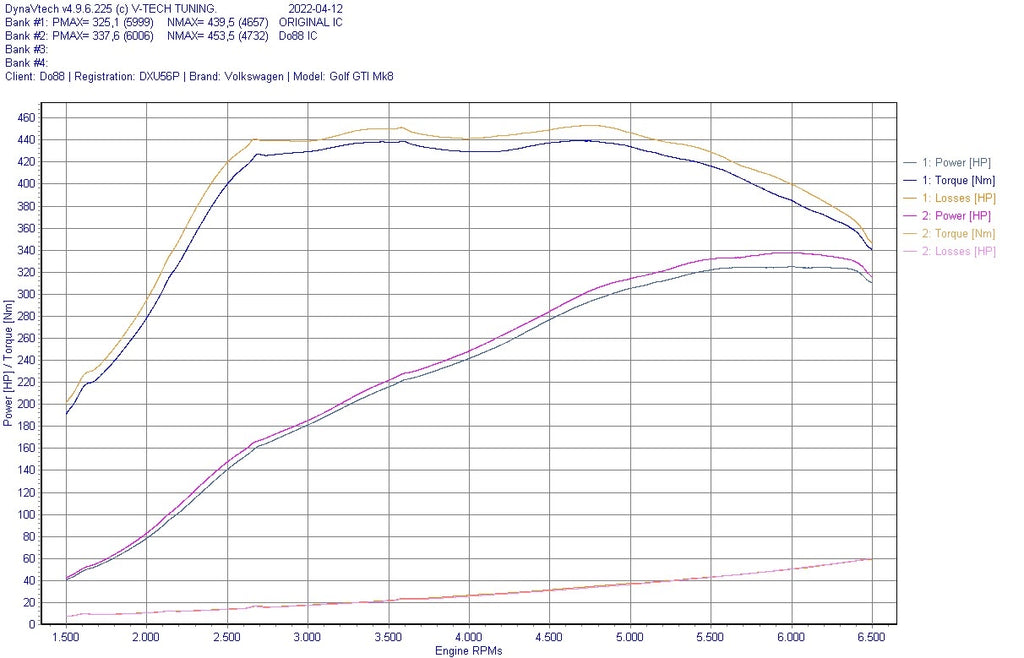 - Peak powergain of +12hp and peak torque gain of +14 Nm! Measured on VW Golf GTI Clubsport Edition 45 2021 with stock software.