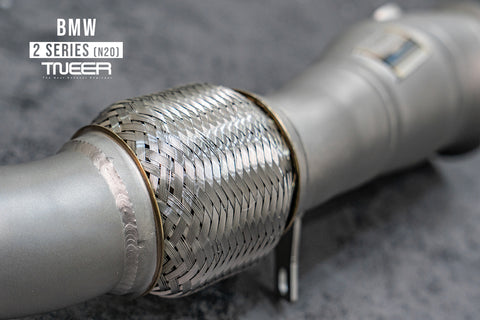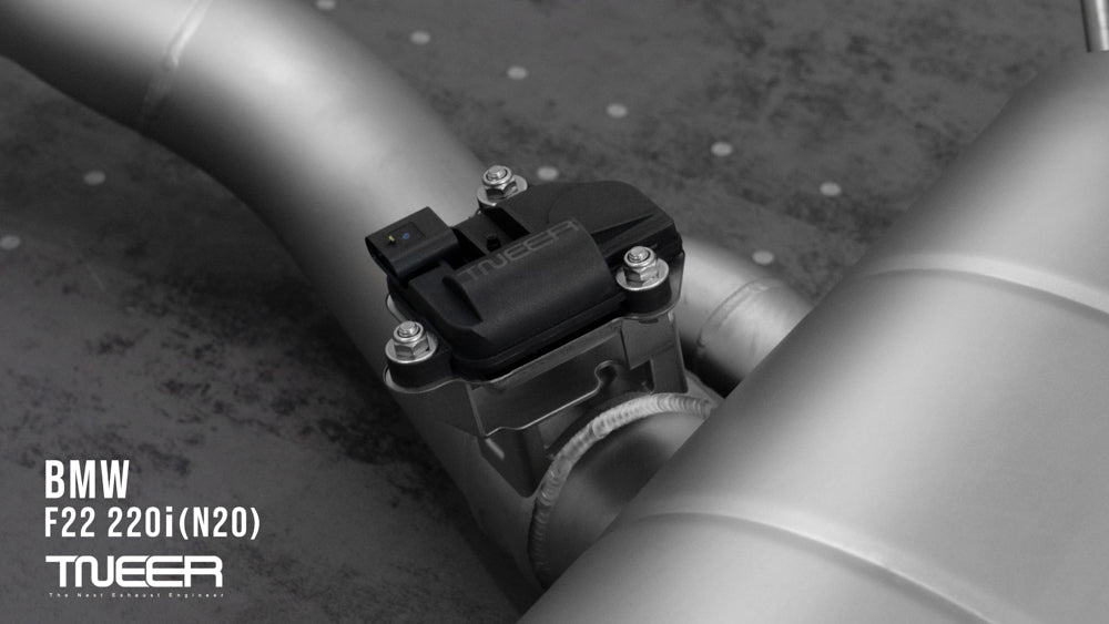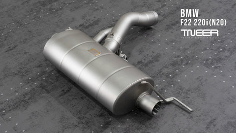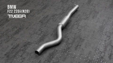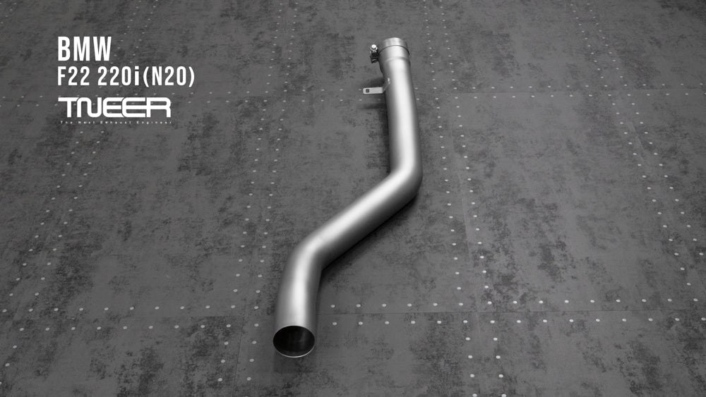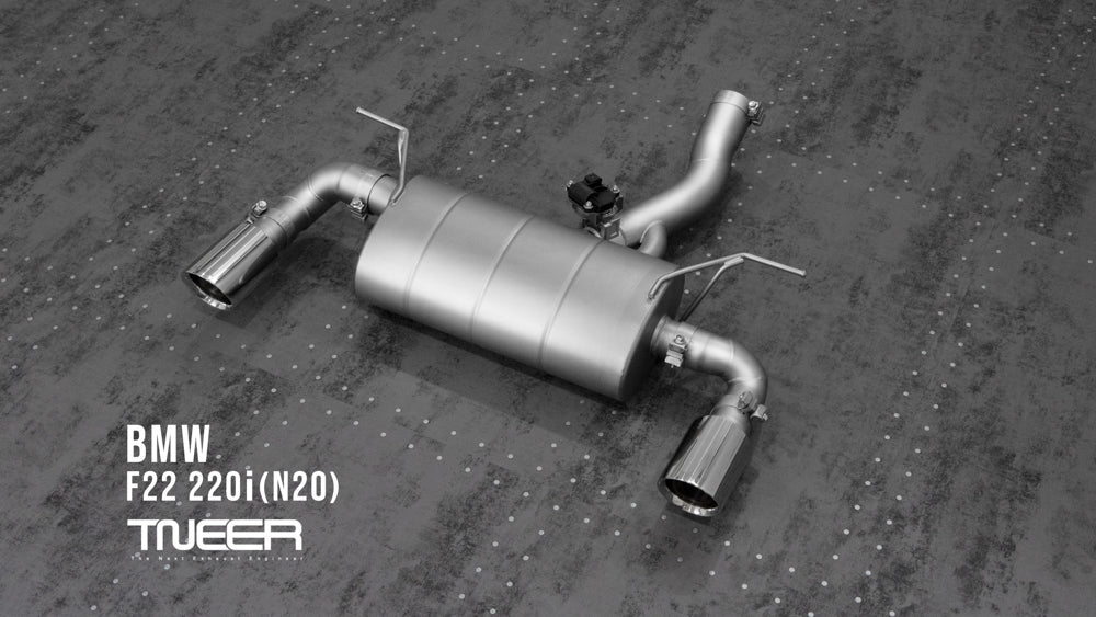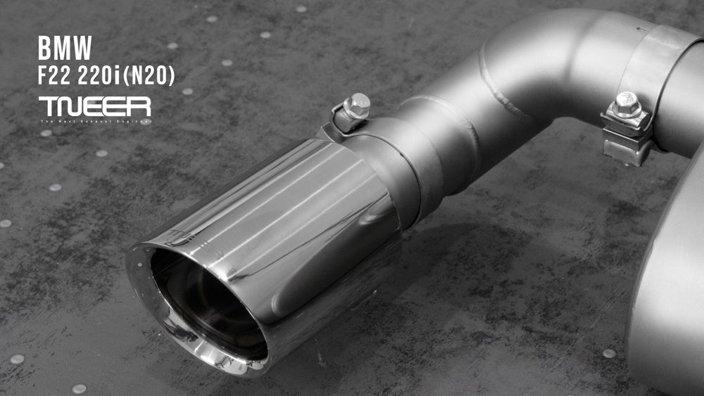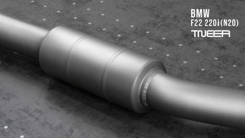 Stand out with this incredible TNEER Front Pipe + Mid Pipe + Rear Mufflers (Valvetronic) + Quad Silver Tips for BMW 220i F22 (N20). (Years: 2014 - 2019)