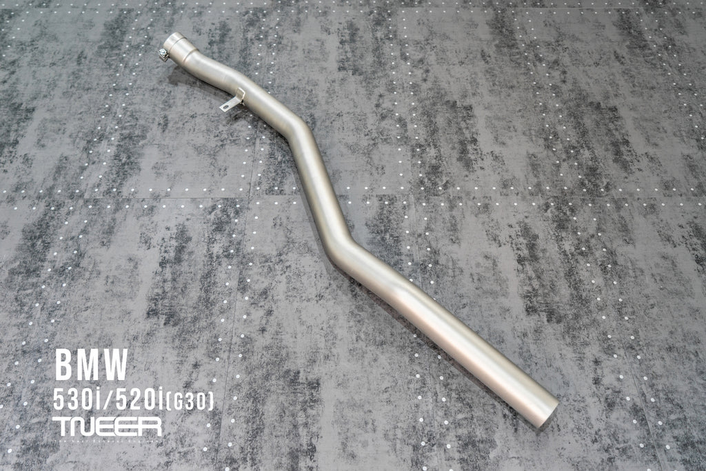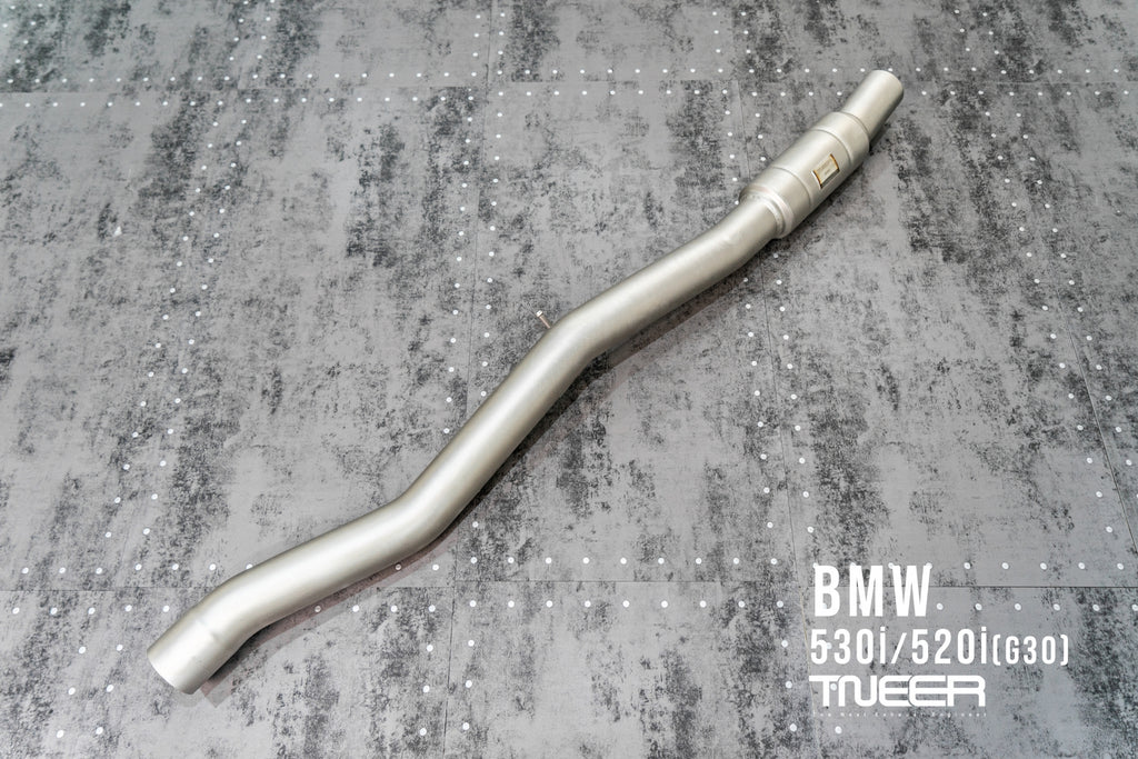 Stand out with this incredible TNEER Mid Pipe + Rear Mufflers (Valvetronic) + Quad Silver Tips for BMW 520i / 530i G30 (B48). (Years: 2016 - Present)