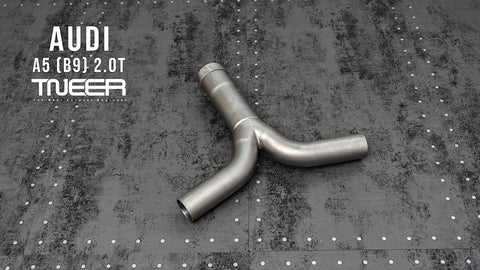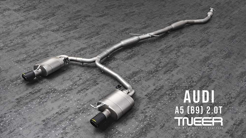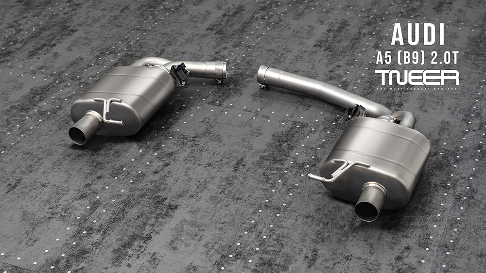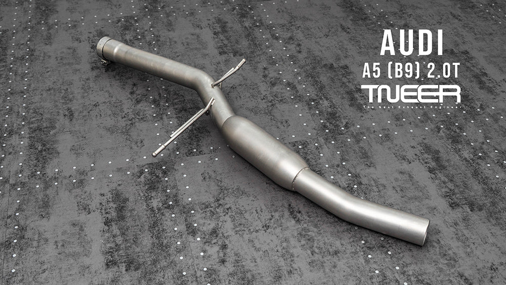 Stand out with this incredible TNEER Front Pipe + Mid Pipe + Rear Mufflers + Dual Silver Tips for Audi A5 B9 2.0T Sedan / Avant.