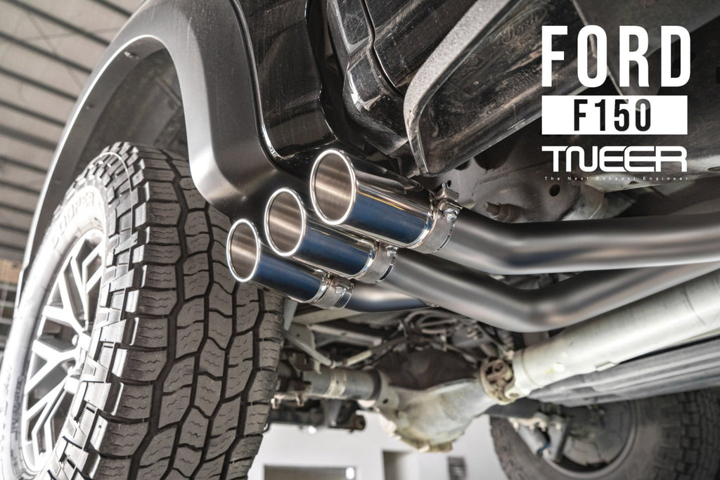 Stand out with this incredible TNEER Front Pipe + Mid Pipe + Rear Mufflers (Valvetronic) + Quad Silver Tips for Ford F150 Raptor 3.5T. (Years: 2017 - Present)