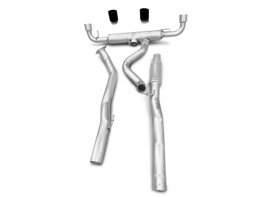 - Includes: Front Pipe, Central Pipe, Rear Muffler and set of 2 Tailpipes