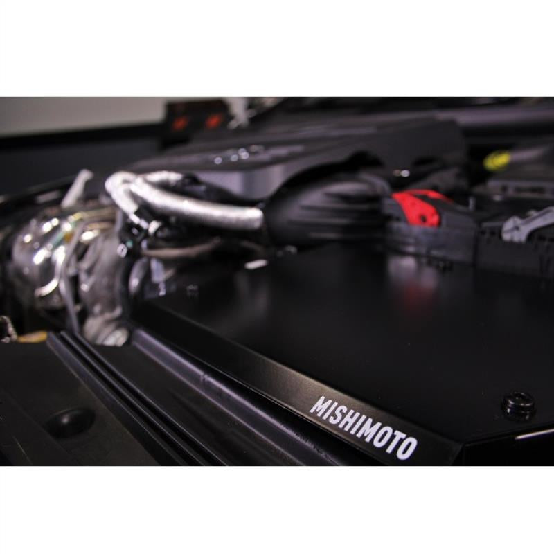 - Mishimoto High-Flow Oiled Air Filter placed to receive maximum airflow from the front of the vehicle