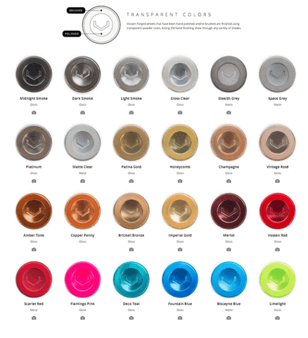 Please be aware Transparent finishes are subject to an additional £100 per wheel charge.