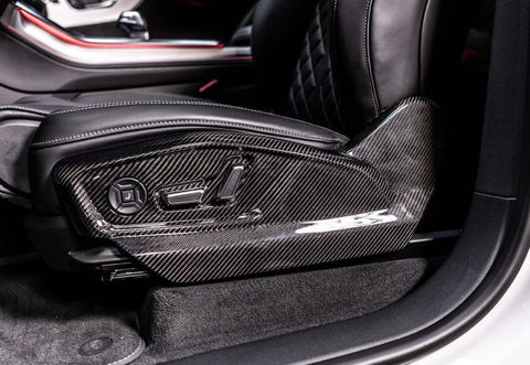 Spice up the interior of your Audi with these amazing carbon fiber seat frame covers. Comes as one pair of seat frame covers.