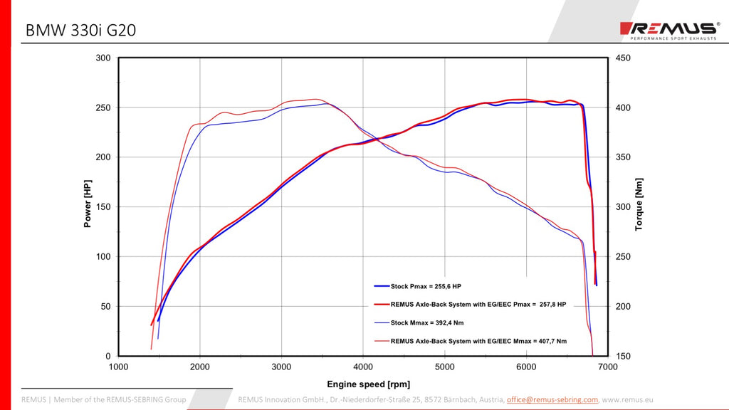 Stand out with this incredible Remus Axle-Back System for BMW Series 3 320i/330i G20 (with OPF). (Years: 2019 – Present)