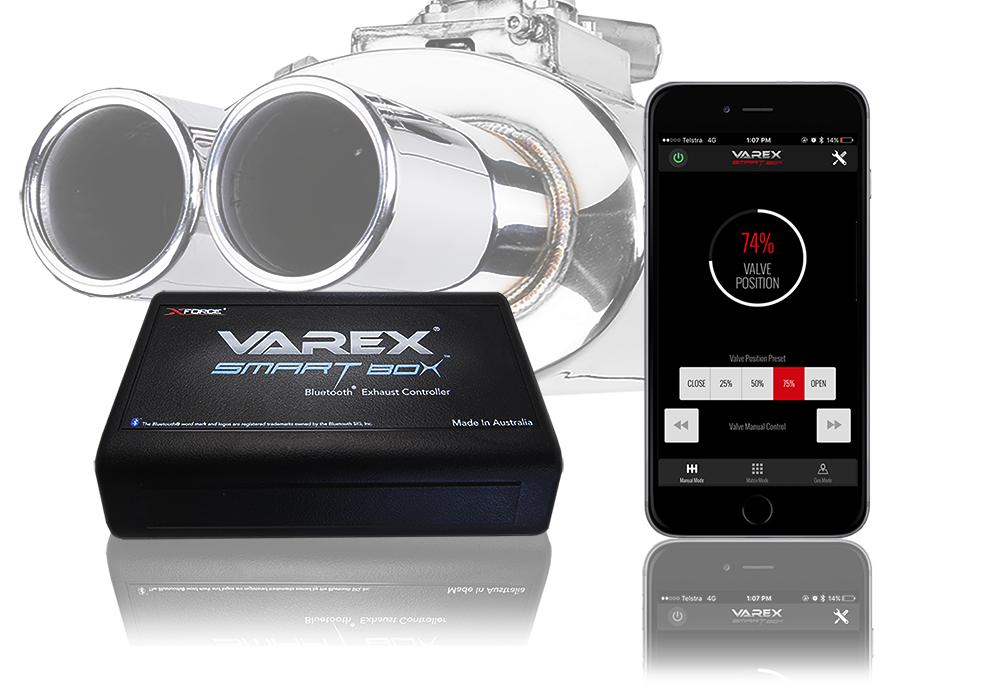 Varex Smart Box is a control device with patent-pending technology that lets the user manually and automatically adjust the exhaust sound level of the Varex exhaust.