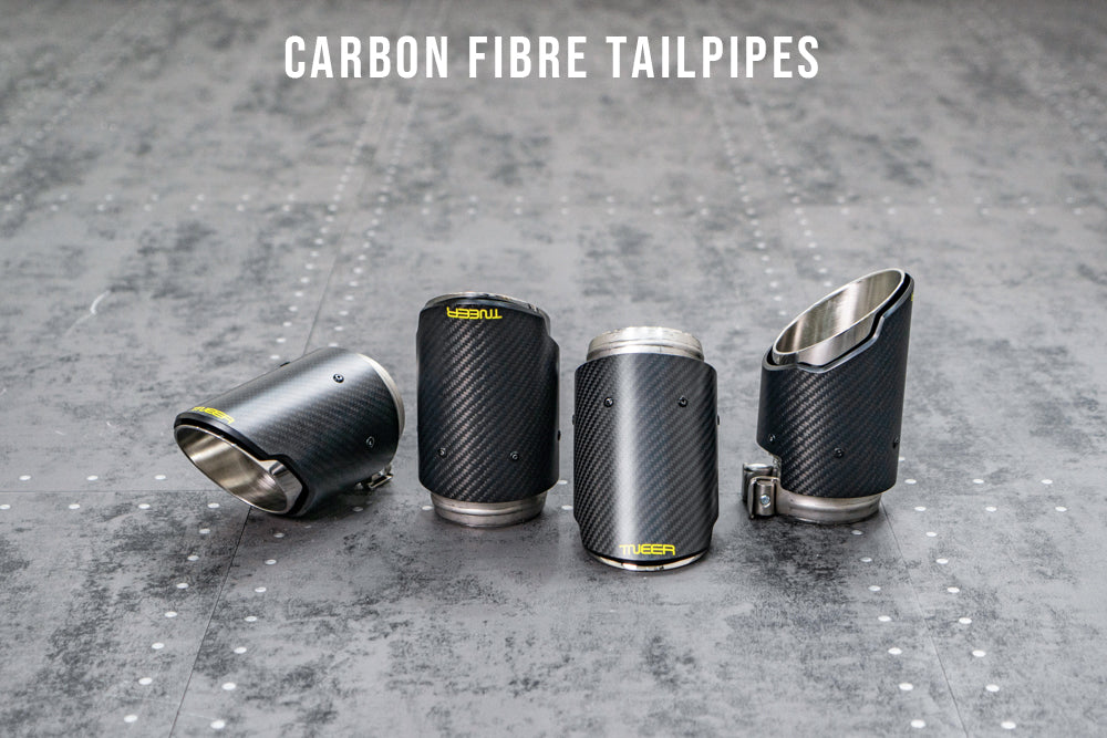 - Dual Hand Crafted Dry Carbon Fiber Tailpipes