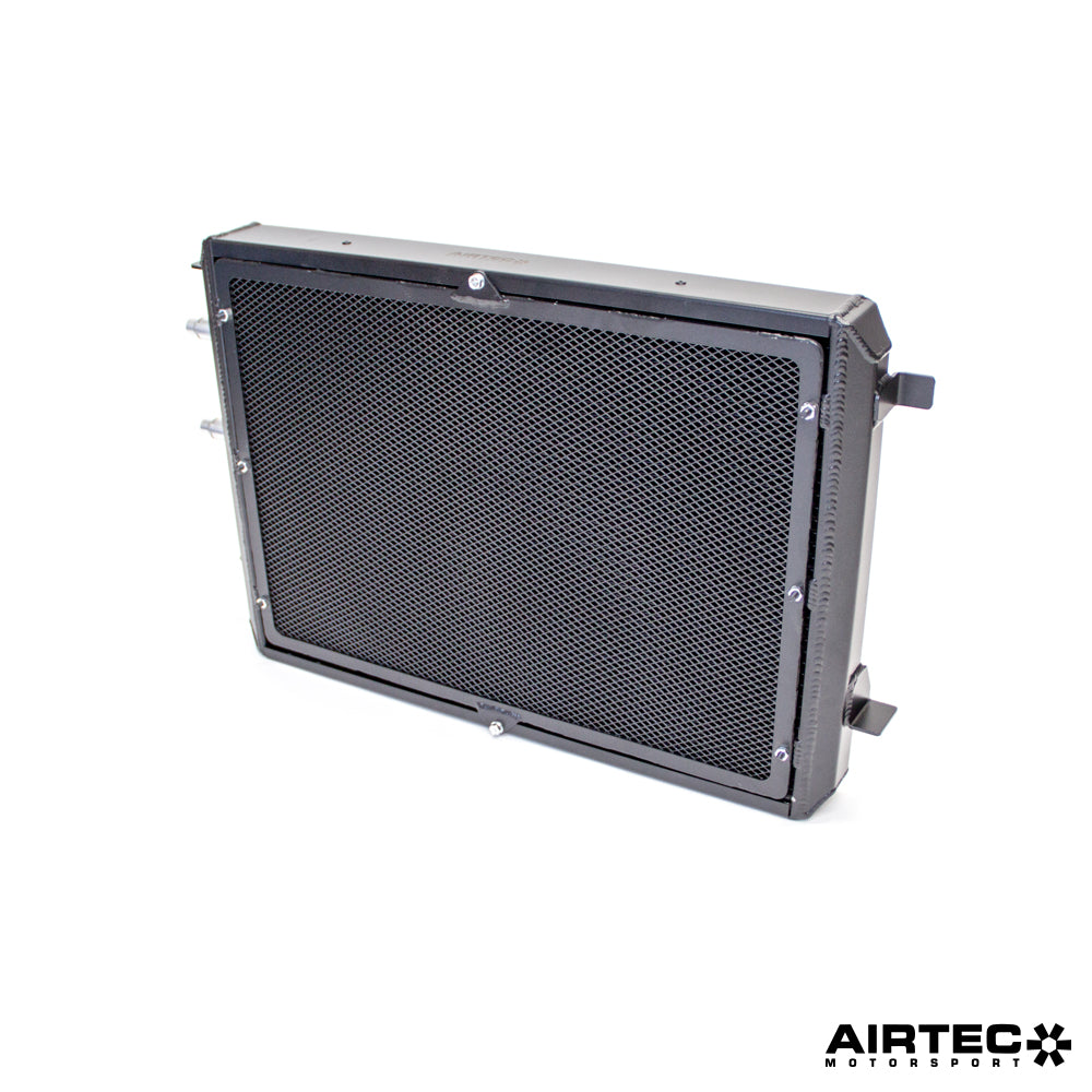 AIRTEC Motorsport’s solution to improving the original set up is utilise the available space behind the front bumper and develop a chargecooler radiator that measures nearly 100mm taller and 20mm thicker overall. This means capacity is increased by a huge 5.4 litres over standard, which is over double the capacity of the original. Frontal area is also increased by 40% to help cool the extra capacity.