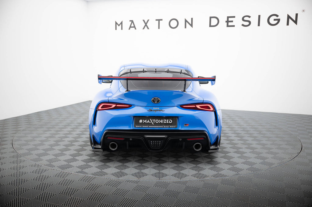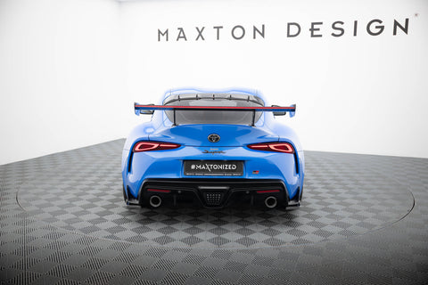 Stand out with this incredible Maxton Design Carbon Fiber Rear Wing with External Brackets Uprights + LED for your Toyota Supra MK5. (Years: 2019 - Present)