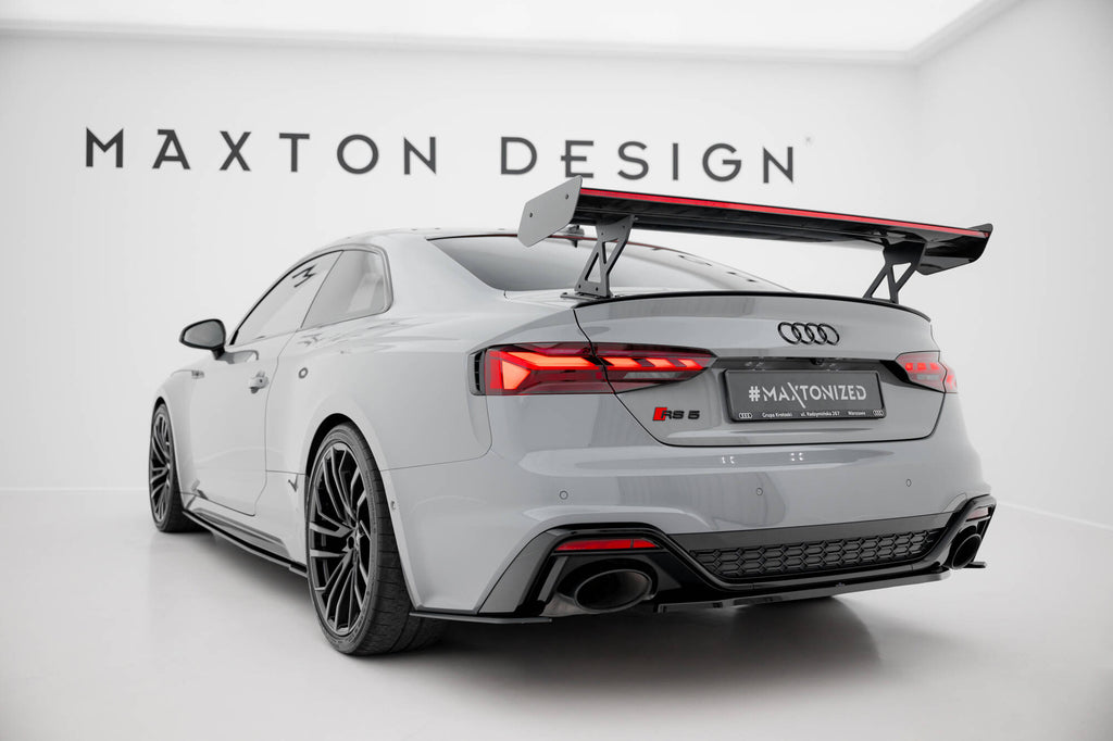 Stand out with this incredible Maxton Design Carbon Fiber Rear Wing with External Brackets Uprights V.1 + LED for your Audi A5 / A5 S-Line / S5 / RS5 Coupe F5 / F5 Facelift. (Years: 2017 - 2024)