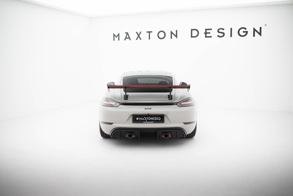 Stand out with this incredible Maxton Design Carbon Fiber Rear Wing with Internal Brackets Uprights V.1 + LED for your Porsche 718 Cayman 982C. (Years: 2016 - Present)