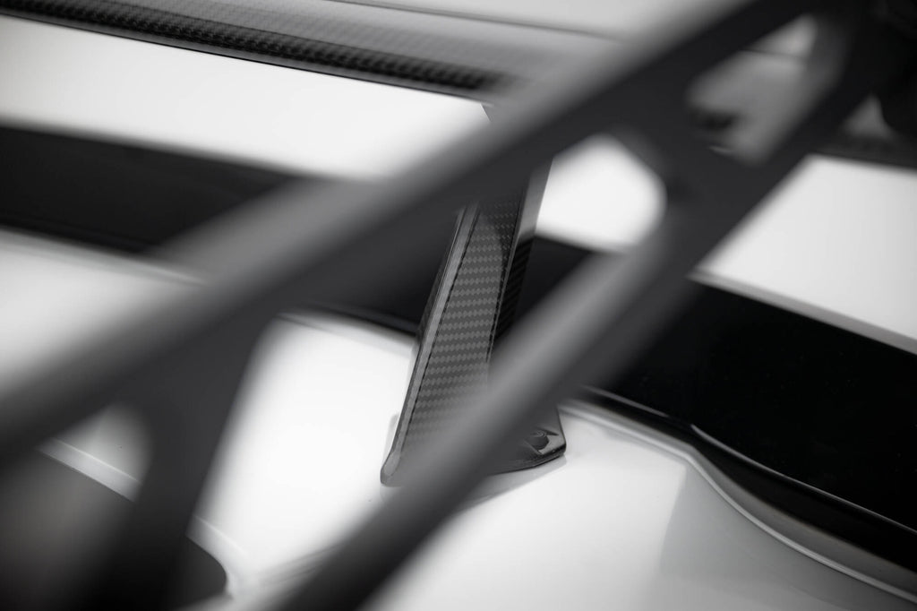 This Carbon Spoiler affects the airflow around the bodywork. It directs the flow of air in the rear section of the vehicle, and visually enhances and emphasizes racing character.