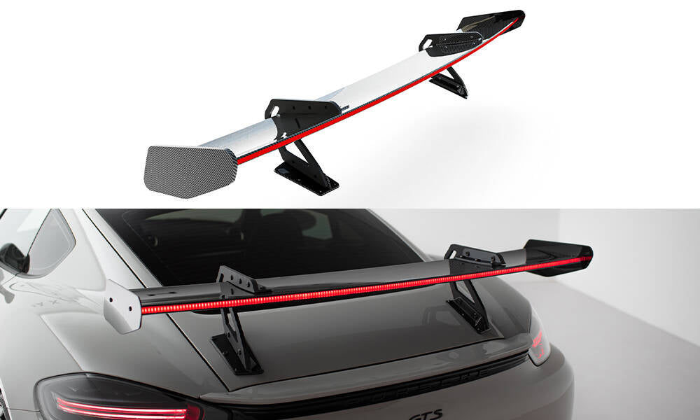 Maxton Design - Carbon Fiber Rear Wing with Upper Swan Mounting V.1 + LED Porsche 718 Cayman 982C