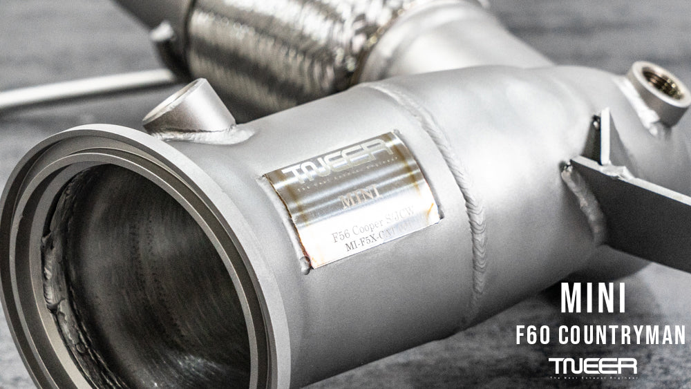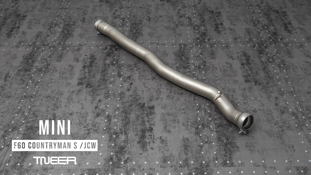 Stand out with this incredible TNEER Front Pipe + Mid Pipe + Rear Mufflers (Valvetronic) + Dual Silver Tips for Mini F60 Countryman S / JCW. (Years: 2017 - Present)