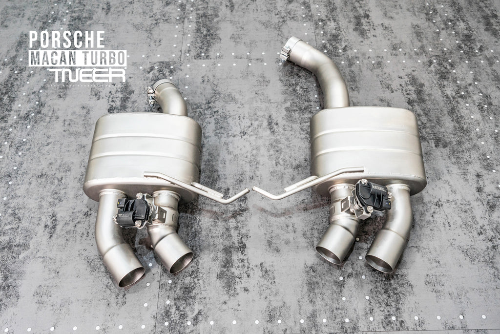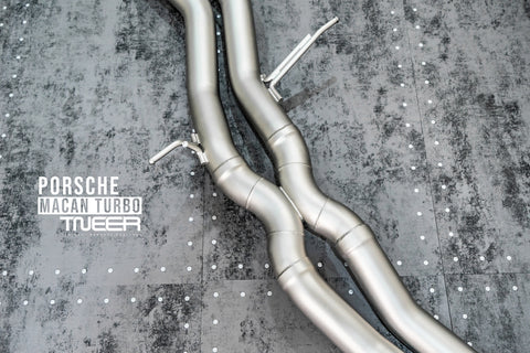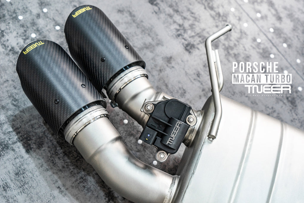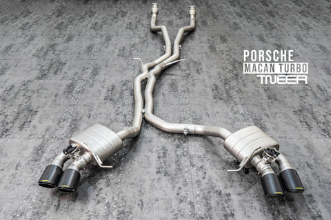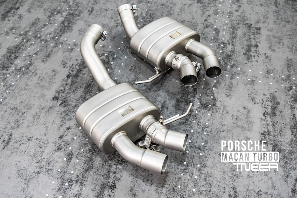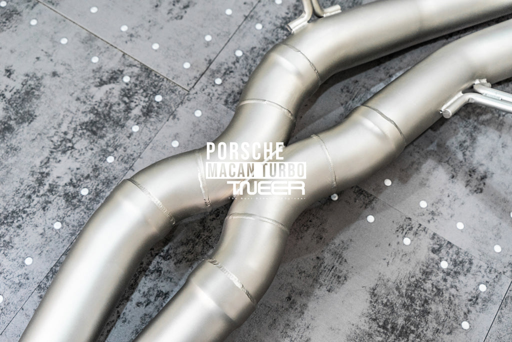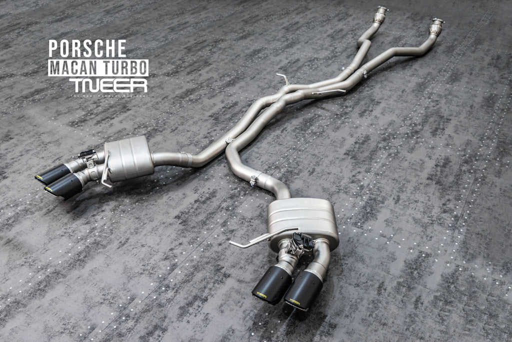 Stand out with this incredible TNEER Front Pipe + Mid X-Pipe + Rear Mufflers (Valvetronic) + Quad Silver Tips for Porsche Macan Turbo. (Years: 2014 - 2018)