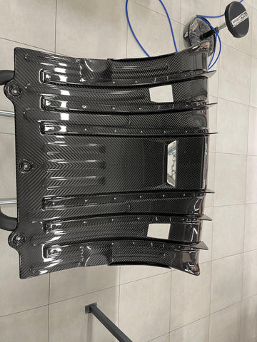 This Rear Diffuser is crafted from carbon fiber. Customers have a choice of finishes: the signature Porsche Twill 2×2 carbon or the TopCar Design signature carbon with larger Twill 4×4 weave. Additionally, you can order carbon in colored variations.
