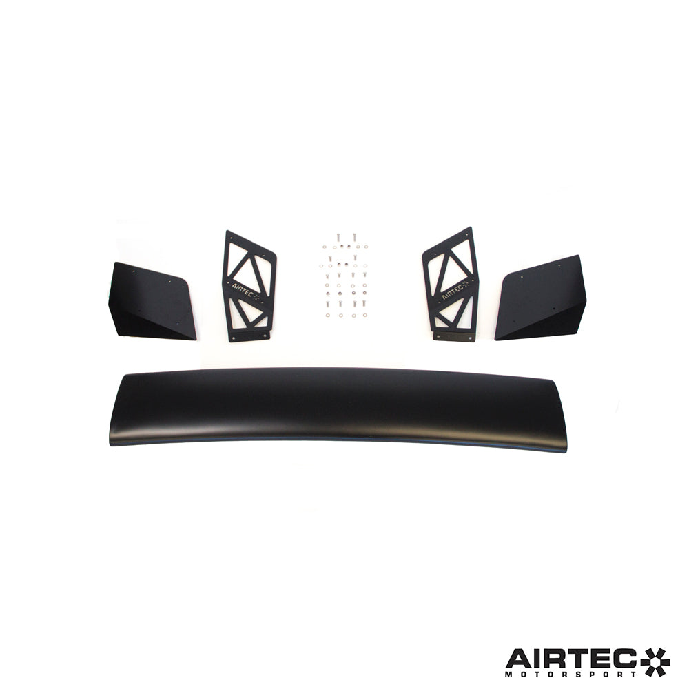 The comprehensive wing kit includes bespoke laser-cut and powder coated AIRTEC Motorsport brackets, unique sculptured alloy end plates, a high-quality fibreglass centre blade section and all fixtures and fittings, including instructions and a drilling template to insure accurate fitment.