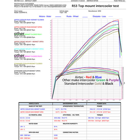 AIRTEC Intercooler 60mm core – Peak power 233.3.0 bhp & 190.5 Ib/ft