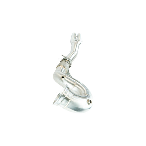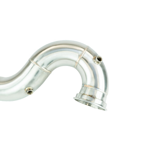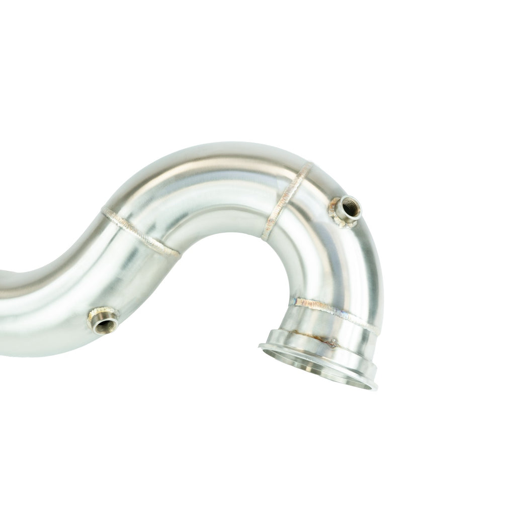 The Black Mamba decat downpipe, made from high-quality mandrel-bent and TIG hand-welded T304 stainless steel, is a direct bolt-on upgrade for the 2.5 TFSI Evo engine in the Audi RS3 8.5V and TTRS Mk3.