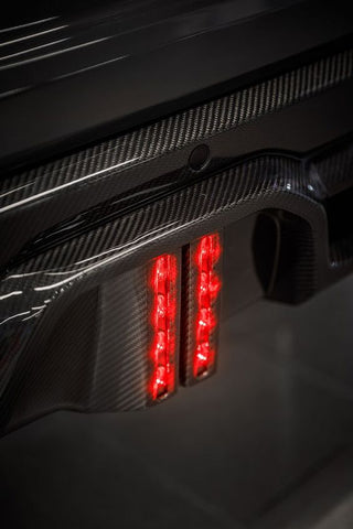A powerful diffuser shows the signature style of the LARTE Design studio. It is complemented by vertical brake lights and horizontal exhaust pipes with aggressive cuts.