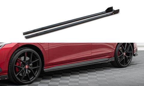 Stand out with these incredible Maxton Design Side Skirts Diffusers + Flaps V.2 for your Volkswagen Golf GTI / GTI Clubsport / GTE / R-Line MK8. (Years: 2020 - Present)