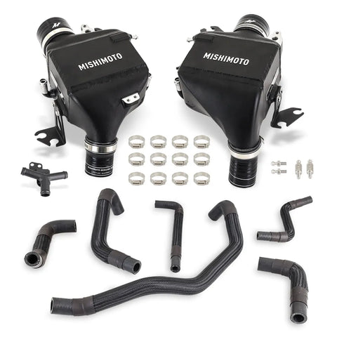 (2) Mishimoto Performance Intercoolers--(6) Intercooler Coolant Hoses--(1) Coolant Y-Pipe--(2) Intercooler Mounting Brackets--(3) DuraCore Intercooler Couplers--(20) Worm Gear Clamps--(2) Engine Cover Spacers--(1) Mishimoto Catch Can Relocation Kit--Mounting Hardware--Mishimoto Lifetime Warranty