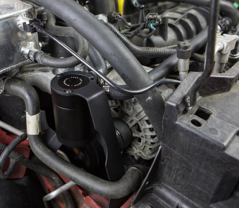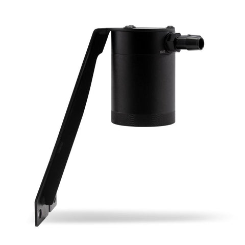 Single can mounts in-line with the PCV system to separate oil particles using 50 micron bronze filter|Silicone hoses include pre-attached stock-style quick-disconnect fittings for plug & play install|Offered with black, blue, or red silicone hoses that come pre-molded for a reliable install|Application-specific bracket mounts the can in a serviceable location in the front of the engine bay|Billet 6061 aluminium sealed can|Defends intercooler, intake system, and essential components from oil blow-by|Reduces carbon build-up on the intake valves|Helps maintain proper octane levels to reduce potential detonation|Filter and can are fully serviceable|Internal air diverter turbulates air longer to improve oil separation|Mishimoto Lifetime Warranty