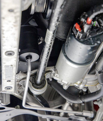 Our catch can kit utilizes the proven engineering from the patent-pending Mishimoto 2-Port Compact Baffled Oil Catch Can complete with its 50-micron bronze filter and internal baffle to better separate the oil and fuel from crankcase vapors. The compact catch can is constructed from 6061 aluminium and sealed with Viton O-rings to stand up to anything the Supra can throw at it. This can mounts in line with the B58's CCV system and defends the intercooler, intake system, and VANOS system from carbon build-up and helps maintain proper octane levels to reduce potential detonation.