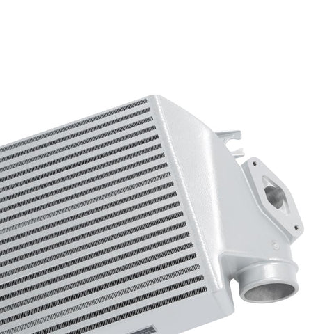 This WRX top-mount intercooler utilizes durable cast aluminium end tanks TIG-welded to a highly efficient and dense bar-and-plate core. The Mishimoto WRX intercooler has a 3.75 core and a total volume of 584 cubic inches. Thanks to this volume and a very dense offset fin pitch, we are able to optimize heat transfer and support vehicles from stock up to 400 whp. This WRX intercooler endured rigorous testing, showing a 12°F temperature drop as well as a +6 whp and +8 wtq bolt-on power increase for our stock test vehicle. Installation is simple, requires no modification to any parts in the engine bay, and can be completed in under 30 minutes.