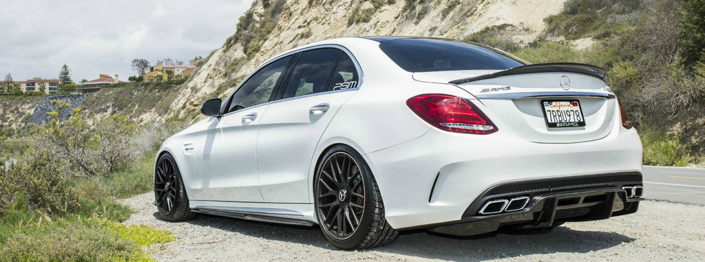 Introducing the all-new Mercedes Benz C63 AMG W205 FULL SUIT collection. This Dynamic Street Armour collection works seamlessly to enhance and accentuate the sporty lines of the C63 AMG personality. The C63 AMG Full suit is designed with a racetrack philosophy to offer greater stability at high speeds smoothing air-flow, making these enhancements street smart.