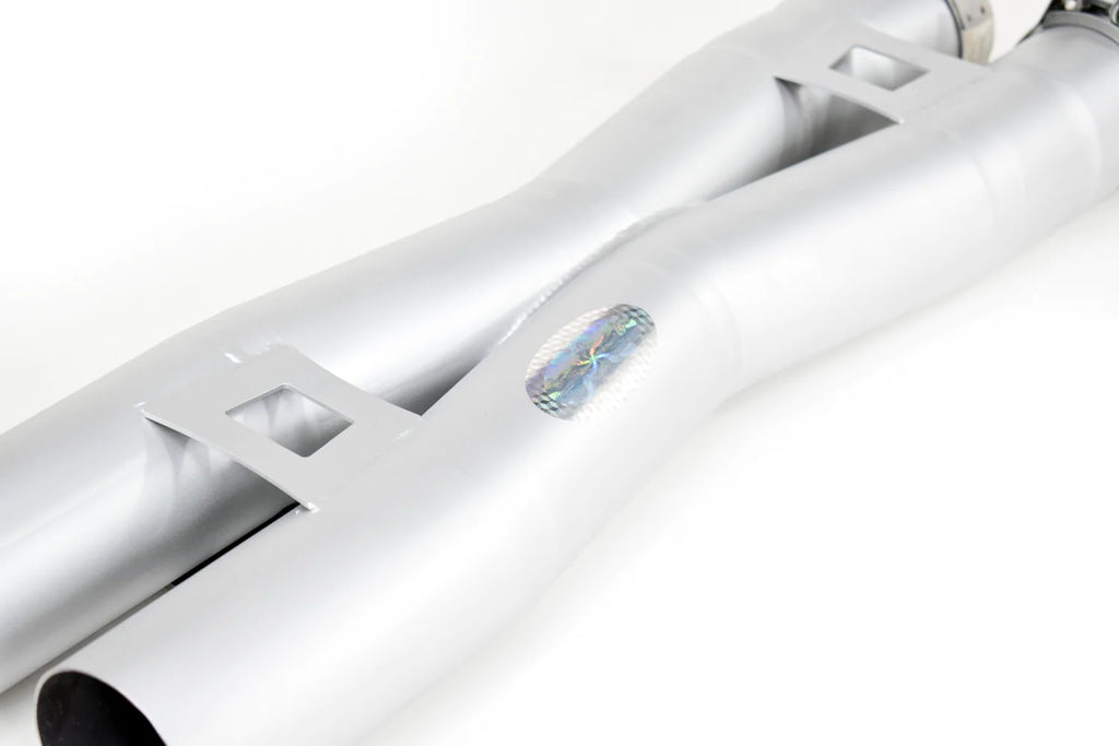 Our active valve sport exhaust systems contain two separate gas paths, and an electronic or pneumatic flap-valve that decides which path is taken. Both have two distinct levels of sound and are slightly louder than stock. With the valves closed, the system takes on a more civilised note and when they’re open, you’re given a sporty note throughout the rev range.