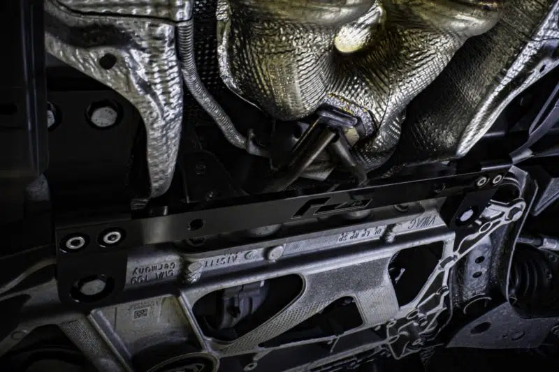 The RacingLine MQB & MQB 'evo' Billet Front Subframe Brace precisely bolts up to help fight subframe flex. This improves rigidity to help protect the car's dynamic responses under hard loading.