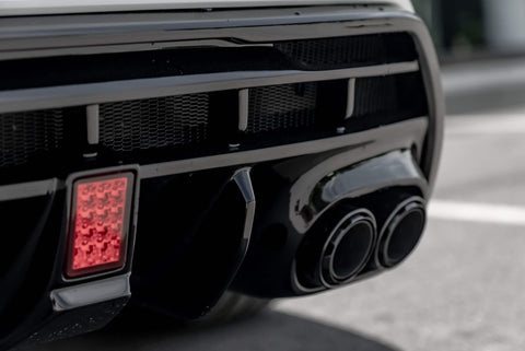 ⁃ Aggressive diffuser with enlarged shapes for double exhaust tips and double brake lights.